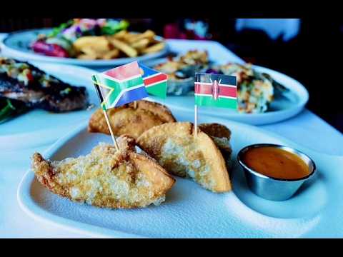 Plantain chips with 2 dipping sauces, skewered chicken and lamb meatballs join luscious desserts on the Eat Drink HTX menu.